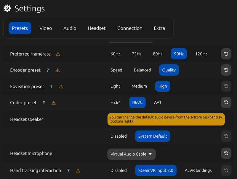 Teil 1: ALVR Settings