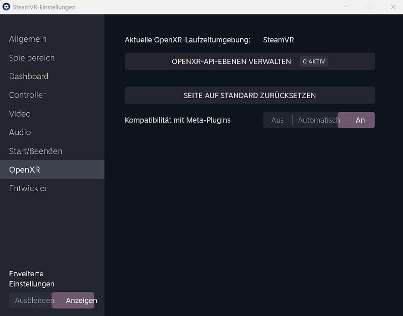 - Gehe in SteamVR → Settings → OpenXR.